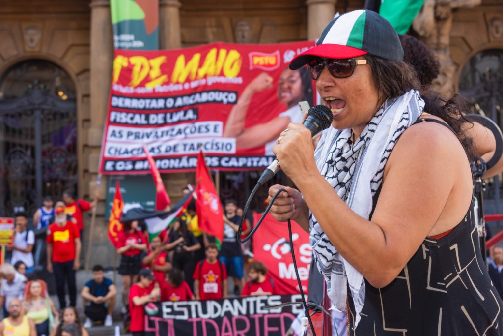 “Aqui estão os servidores públicos de São Paulo, que fizeram greve contra o prefeito Ricardo Nunes (MDB). Aqui estão grevistas e lutadores que se enfrentam com o governador Tarcísio, que quer privatizar o metrô, o trem e a água. Por isso, temos que seguir a nossa batalha por uma outra sociedade, onde a riqueza produzida por nós, trabalhadores, fique em nossas mãos e não com um punhado de bilionários. Nós podemos mudar o mundo, não será essa esquerda institucionalizada e nem a ultradireita que irão apontar o caminho de libertação da classe trabalhadora. Viva o 1º de Maio, viva a luta internacional da classe trabalhadora”, completou.