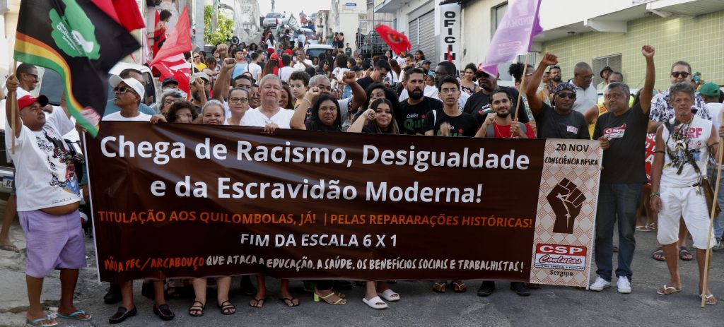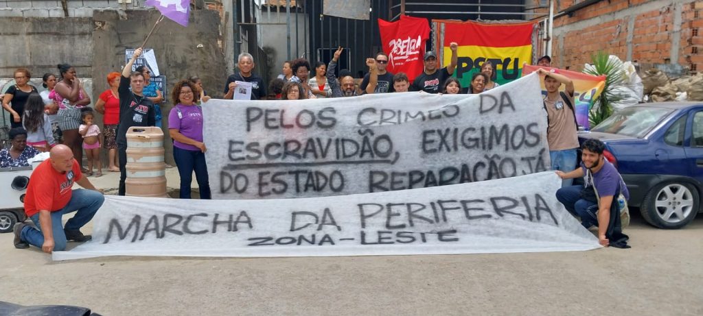 Este ano, em memória da luta quilombola e de Zumbi e Dandara, as Marchas da Periferia tiveram como eixo a exigência ao governo Lula (PT), ao Estado brasileiro e ao Banco do Brasil (BB) a reparação pelos crimes da escravidão.