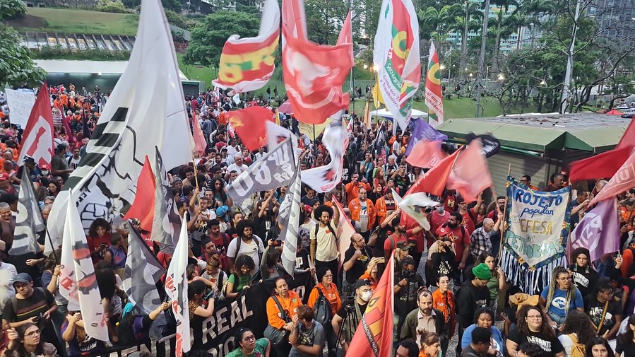 Em Minas Gerais, entidades sindicais e movimentos sociais de Belo Horizonte realizaram um ato público na Praça Sete, em defesa dos serviços públicos e contra as privatizações de Lula (PT) e do governador Zema (Novo).