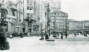 Com a desculpa de que a China se achava no marco de um movimento revolucionário de emancipação nacional, a Internacional Comunista afirma, em 1924, que o papel de direção desse movimento cabia à burguesia do país. O PC chinês chegou a se dissolver no Kuomintang e Chiang Kai-shek foi eleito presidente de honra da Internacional Comunista. Mas, em 1927, essa política resulta num terrível desastre quando Kai-shek ordena o massacre de milhares de comunistas na rebelião de Cantão, em 1927.
