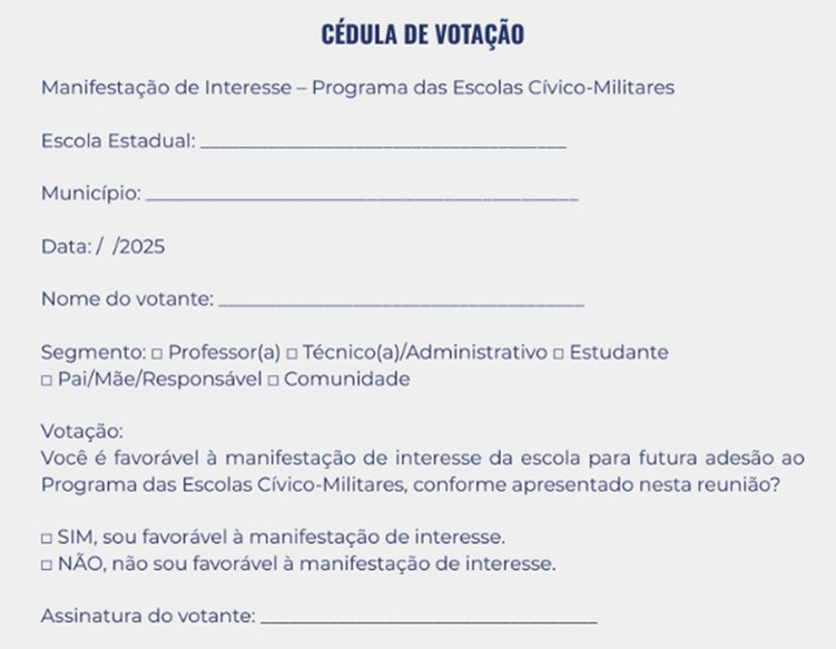 Mas por que? Veja os nove pontos para votar contra a adesão à escola cívico-militar.