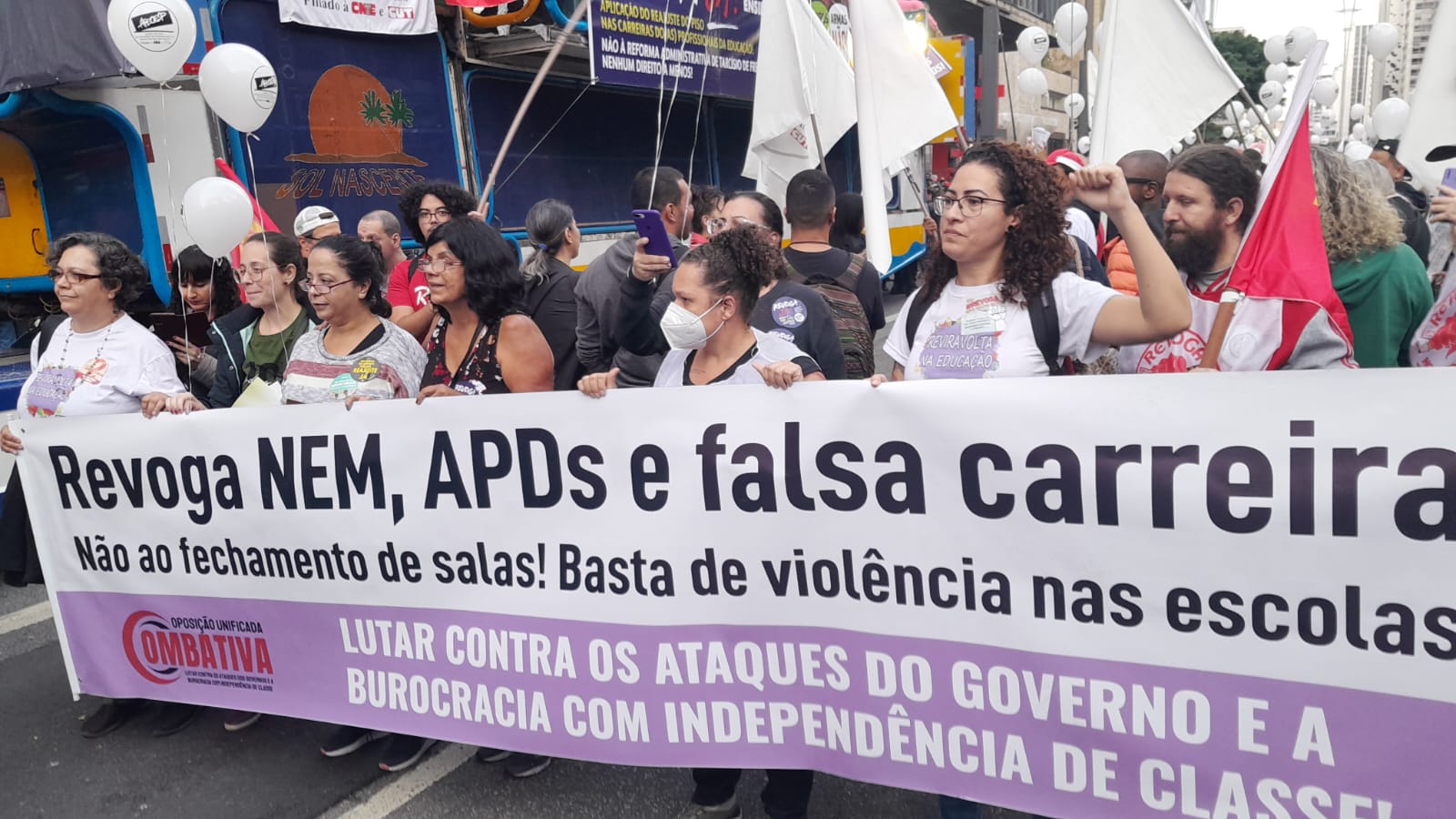 A chapa 2, da Oposição Unificada Combativa, se formou com 120 membros e centenas de apoiadores e está passando nas escolas, defendendo um sindicato independente dos governos e com um perfil democrático e de luta.