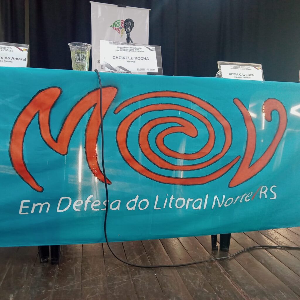 Da janela do ônibus a visão da Estrada do Mar é assustadora; meus olhos filmam um documentário sobre a dizimação ambiental da região. Outdoors idílicos e cafonas anunciam o paraíso para os “escolhidos”. Uns colados aos outros, cada conglomerado imobiliário disputa qual oferecerá o lago maior, o melhor clube privê e a certeza de estar longe do resto da humanidade. Talvez essa certeza de distância das gentes comuns e seus cotidianos à beira mar estejam na raiz da ideia genial de exportar os excrementos das classes altas para a bacia do Rio Tramandaí. É isso! Defeca-se ali no ambiente glamouroso, com direito a campos de golfe e hospital particular (eu vi na estrada!) e os dejetos vão parar em “apenas” 18 municípios, onde milhares de trabalhadores, pescadores, quilombolas, comunidades indígenas, animais e plantas vivem. E o mar? Para que o mar se tem seus lagos com ondas, ora bolas!Ironias à parte, essa é a essência da proposta da Aegea/Corsan (Companhia Riograndense de Saneamento) e construtoras de condomínios de luxo de Xangri-lá e região. Assim que foi anunciado esse projeto devastador, as comunidades locais já se organizaram, criaram um Movimento Unificado em Defesa do Litoral Norte (MOV) que tem forçado liminares e audiências públicas – como a do último dia 10, que reuniu mais de 500 pessoas em Tramandaí.