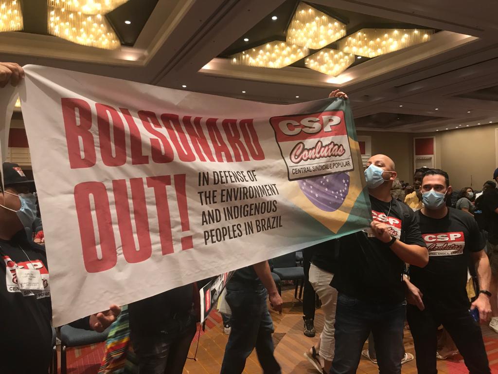 No dia 23 de junho, ativistas da central sindical brasileira CSP-Conlutas, estiveram nos EUA para participar da conferência Labor Notes no final de semana anterior, e aproveitaram para se juntar ao piquete, em plena tempestade que caía na cidade, para expressar solidariedade internacional aos trabalhadores em luta. O dirigente da CSP-Conlutas, Herbert Claros, falou sobre as lutas dos trabalhadores brasileiros aos sindicalistas norte-americanos, que receberam calorosamente os visitantes. Seis integrantes da CSP-Conlutas entraram na fila e ajudaram a desviar um caminhão que tentava atravessar o piquete.