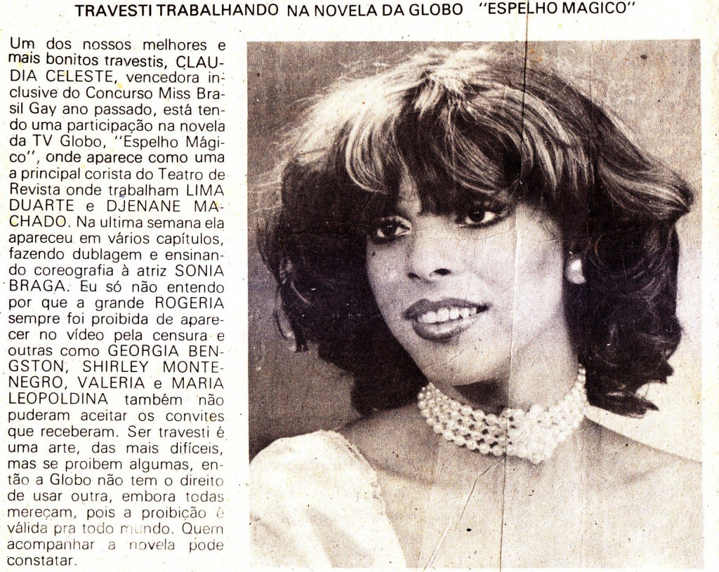 Cláudia “escapou” desta sina dedicando-se às artes. Algo, inclusive, que teve início quando fazia o serviço militar. Tornando-se cabeleira, ela começou a circular pelo meio artístico iniciou sua transição de gênero e sua beleza e talento a levaram aos palcos na estreia de “O mundo é das bonecas”, no Teatro Rival, em 1973. Depois disto, participou de vários concursos de beleza trans, sendo eleita “Miss Brasil Pop”, em 1976.