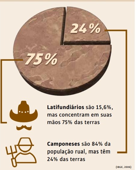 O Brasil é um país com uma enorme concentração fundiária. Segundo o Instituto Brasileiro de Geografia e Estatística (IBGE), as famílias camponesas representam 84% dos estabelecimentos das terras, mas têm apenas 24% delas. Já os latifundiários são 15,6%, mas concentram em suas mãos 75% das terras.