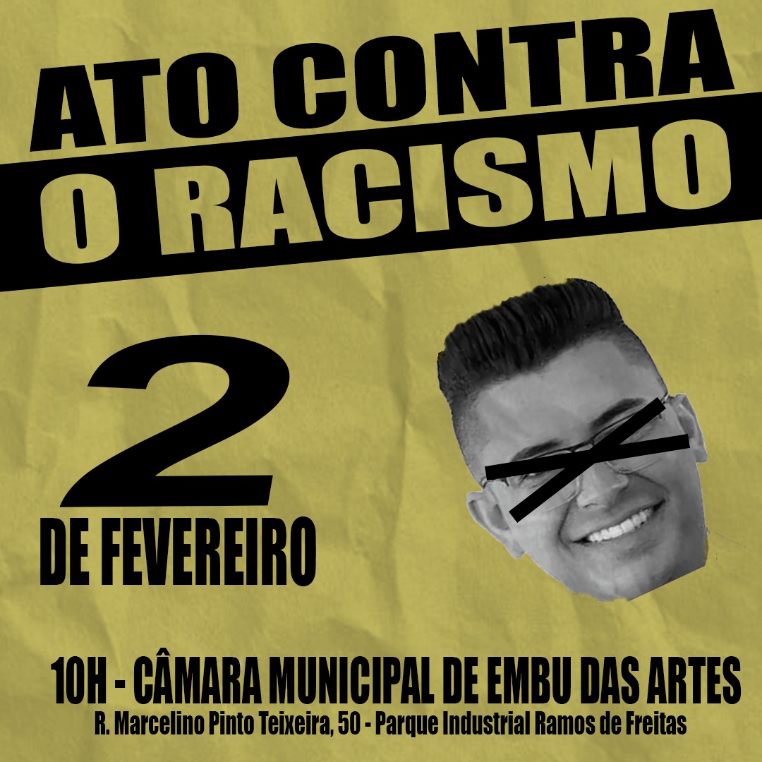 Diante disso, estamos nos incorporando ao chamado do movimento negro para o Ato Contra o Racismo. Ocorrerá no dia 2 de fevereiro, às 10 horas, em frente à Câmara Municipal de Embu das Artes. Venha conosco, traga sua máscara, álcool em gel e cartaz. Como diria Solano, "de mãos fechadas contra todas as tiranias".
