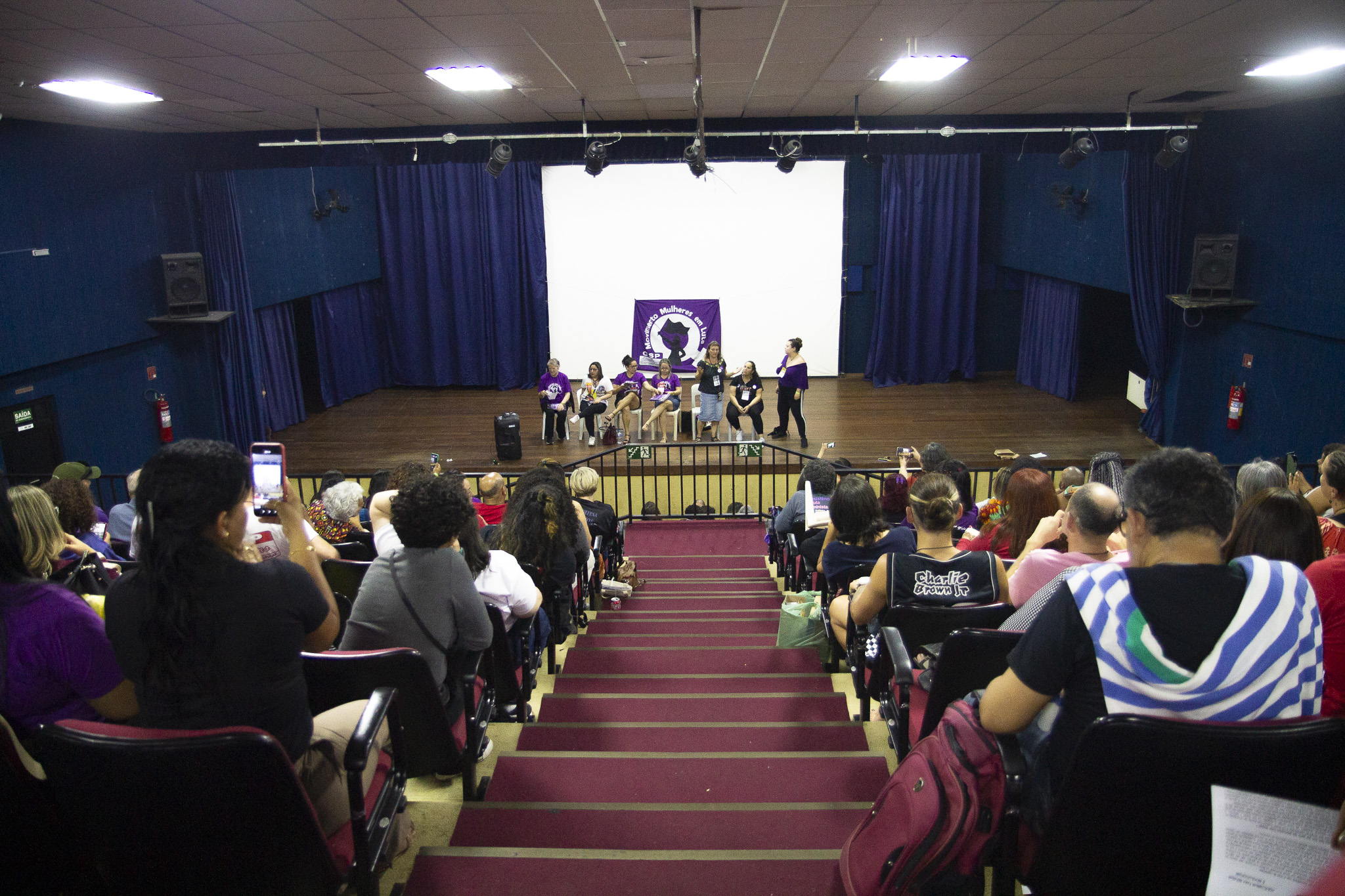 O espaço era grande, mas em pouco tempo, foi tomado por uma plateia animada, que nem parecia que tinham passado o dia todo em debates e votações no 5º Congresso Nacional da CSP-Conlutas. Mulheres de diversos lugares do Brasil entoavam palavras de ordem e demonstravam o orgulho e satisfação em construir um movimento de mulheres trabalhadoras que enfrenta o machismo e a exploração capitalista com grande empenho.