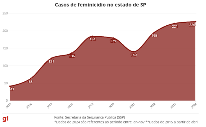 De fato, enquanto o governador é só elogios a Derrite, São Paulo bate recorde em feminicídios como aponta o manifesto. De acordo com levantamento do G1, com base em dados da Secretaria de Segurança Pública de São Paulo, há um aumento expressivo dos casos nos últimos três anos: