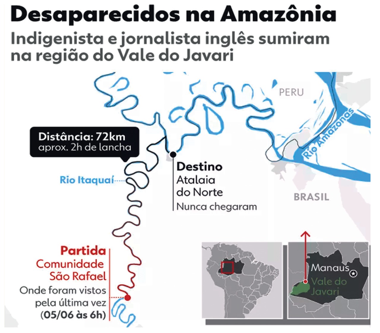Bruno ajudava uma equipe de vigilância da União dos Povos Indígenas do Vale do Javari (Univaja). Ajudou a produzir documentos com relatos de invasão, apontando a presença de grupos armados, denunciando ameaças e até ataques a tiros contra indígenas. Um relatório foi entregue ao Ministério Público Federal de Tabatinga, à Força de Segurança Nacional, sediada na região, e à própria Funai. O documento chegou até mesmo a mencionar o nome de Pelado. Mas nada foi feito.