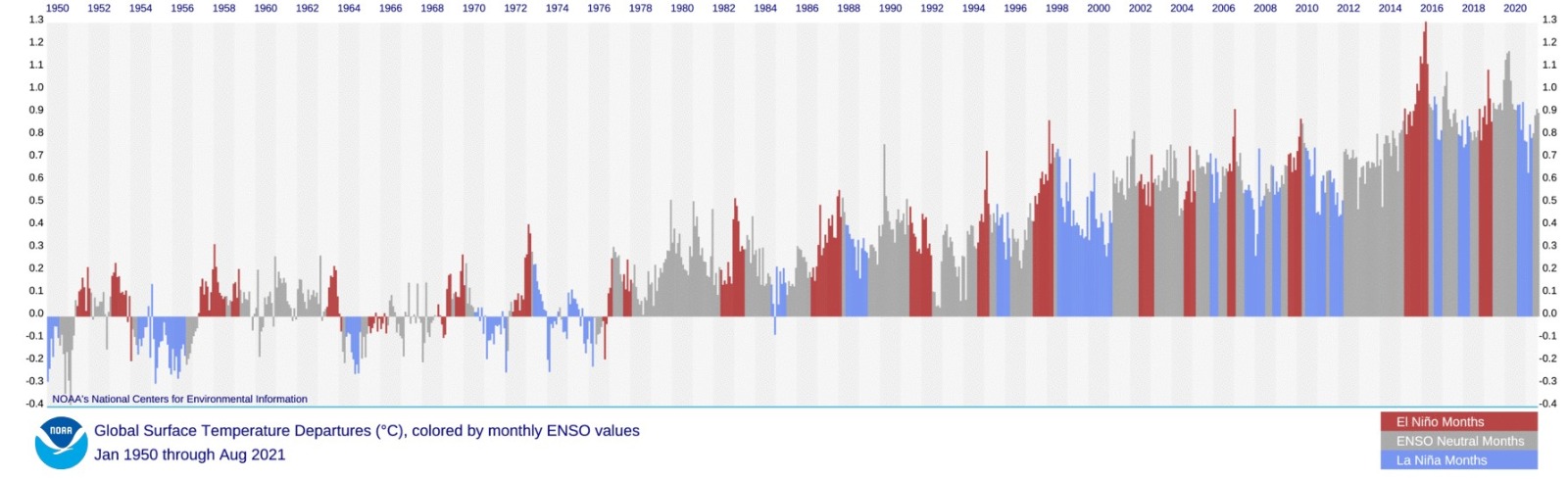 O planeta vive sob os efeitos do El Niño, um fenômeno climático que aquece as águas do Oceano Pacífico e provoca alterações no clima em escala global, como o que estamos vendo no Brasil, na Europa e América do Norte. Mas o aumento da intensidade e da frequência do El Niño estão relacionados ao aquecimento global, ocasionado pelo consumo de combustíveis fósseis. Basta verificar o gráfico ao lado para ver que os últimos El Niño foram os mais quentes já registrados.