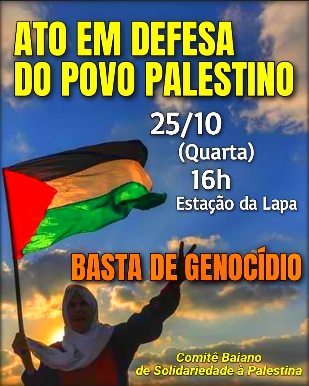 16h – Salvador (BA): 2º Ato em Solidariedade ao povo palestino. Loca: Estação da Lapa