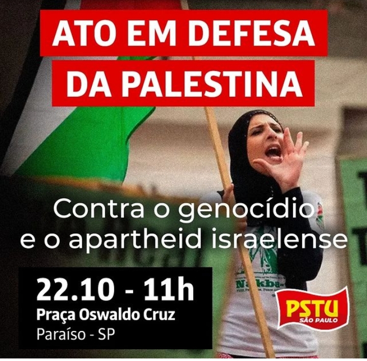 Aqui, no Brasil, não é diferente. Enquanto o governo brasileiro, vacila, pra dizer o mínimo, em relação ao conflito, mascarando sua vergonhosa posição pró-Israel sob um discurso de “neutralidade e pela paz”, já ocorreram manifestações em diversos pontos do país e uma nova rodada está sendo convocada para os próximos dias.