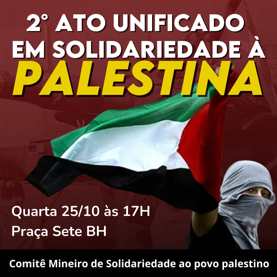 17h – Belo Horizonte (MG): 2° Ato em Solidariedade à Palestina (Praça Sete)