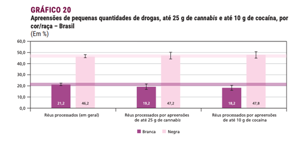 Em outubro de 2023, o Instituto de Pesquisa Econômica Aplicada (Ipea) publicou uma nota técnica sobre a questão racial nos processos criminais por tráfico de drogas em São Paulo, decorridos no primeiro semestre de 2019. As conclusões são bastante categóricas: