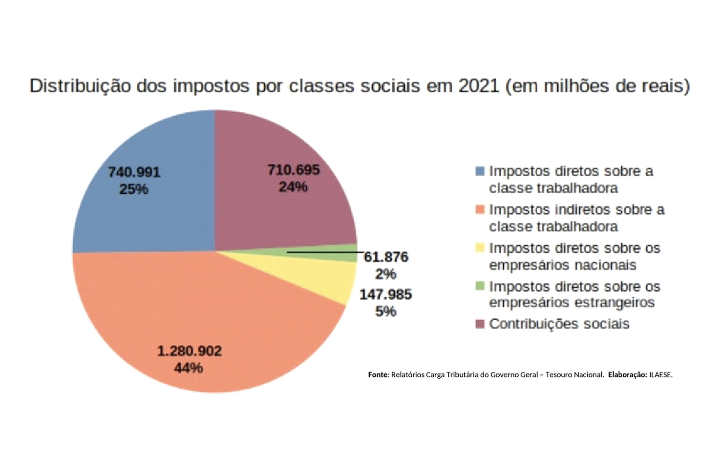 Levantamento realizado pelo Instituto Latino-Americano de Estudos Socioeconômicos, o Ilaese, revelou que, em 2021, os impostos diretos sobre a classe trabalhadora (Imposto de Renda e sobre as Pessoas Físicas), arrecadaram R$ 583 bilhões. Enquanto isso, as 72 maiores empresas do país (dentre as 100 maiores), pagaram só R$ 112 bilhões.