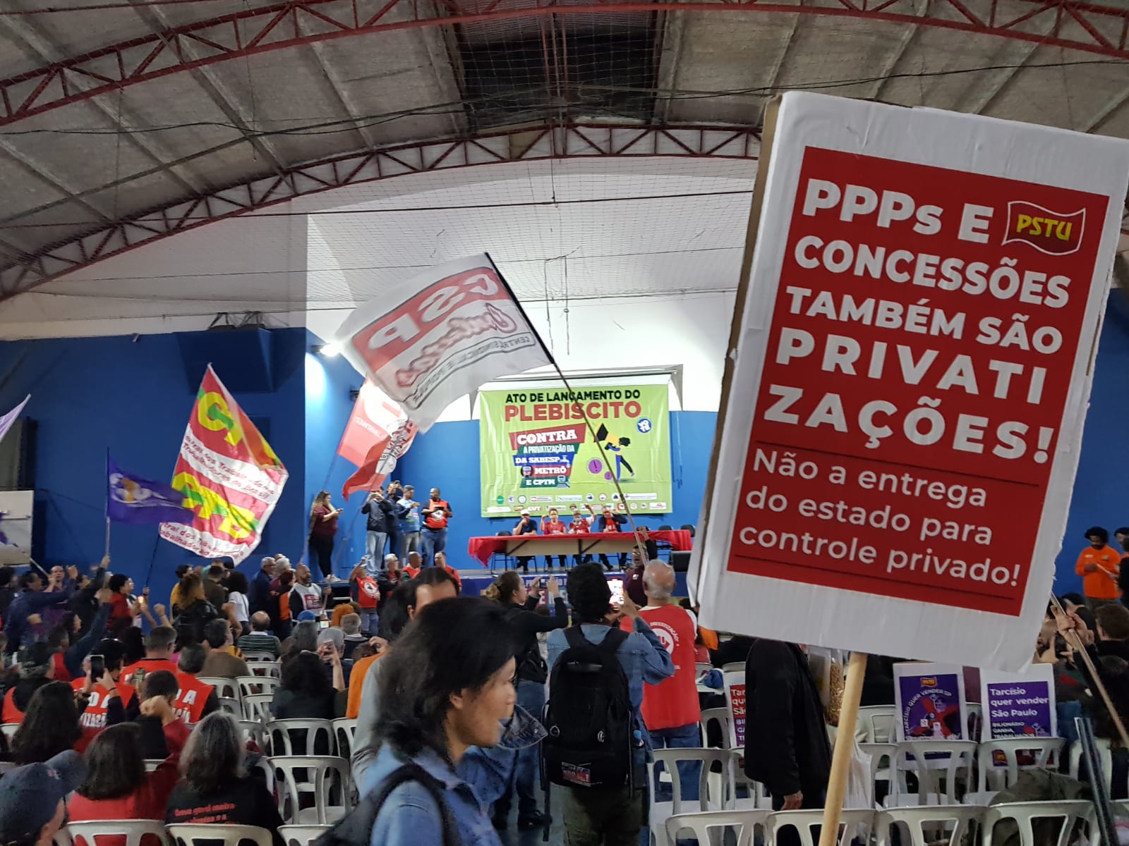 "Fizemos agora uma assembleia unificada entre 4 sindicatos, dois da ferrovia, dos metroviários e o dos trabalhadores da Sabesp, e daqui vamos já partir para a preparação desta greve de terça-feira contra as privatizações que estão ocorrendo aqui em São Paulo", afirma Narciso Soares, vice-presidente do Sindicato dos Metroviários e militante do PSTU. "Nós não vamos aceitar essas privatizações e exigimos de Tarcísio que se consulte a população se a água deve ser pública ou privada, se o transporte deve ser público ou privado", reforça.