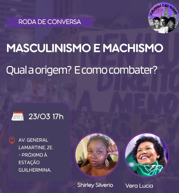 Como parte do calendário do mês de março, que marca o Dia Internacional das Mulheres Trabalhadoras, o Quilombo das Rosas realiza a roda de conversa ‘Masculinismo e machismo: Qual a origem? E como combater?’. A atividade vai acontecer neste sábado dia 23, às 17h, na sede do Quilombo das Rosas, localizada na Av. General Lamartine, 2E, próximo à Estação Guilhermina (Metrô Linha Vermelha).