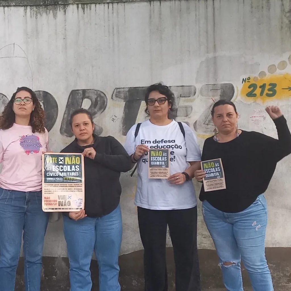 É preciso unificar estudantes, professores e a comunidade para derrotar esse projeto! Escola não precisa de polícia, precisa de mais investimento, funcionários e professores valorizados, respeito à autonomia, à liberdade e à diversidade, e um ensino voltado para a formação científica, crítica e completa para todos.
