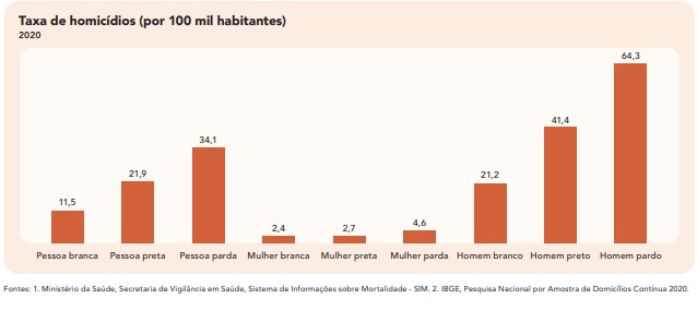 Números como estes nos levam a dizer que, se pudéssemos resumir os dados apresentados pelo IBGE em uma frase, poderíamos afirmar que, por trás de todos eles, está uma mesma ideologia: neste sistema, ser não-branco é ser alguém, no mínimo, “menos humano”; alguém “inferior” em termos sociais, morais, culturais, intelectuais, políticos etc. Inclusive, no que se refere ao mais básico dos direitos: o de viver.
