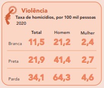 Dentre os dados divulgados, os mais estarrecedores, como sempre, se referem à violência, em particular os homicídios. Em primeiro lugar, o número de assassinatos no Brasil é inadmissível sob qualquer ponto de vista. Em 2020, nada menos que 49.868 pessoas (45.915 homens e 3.833 mulheres) tiveram suas vidas abreviadas de forma prematura e violenta. Um índice 9,6% maior do que 2019; refletindo, evidentemente, os estragos feitos pelo governo Bolsonaro.